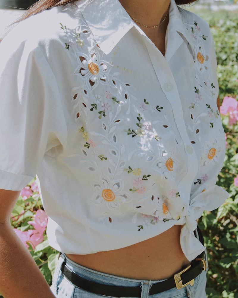 Blusa de seda natural en tono blanco perla con cuello mao y botones dorados. Una pieza versátil que combina elegancia y confort. Perfecta para la oficina o eventos casuales elegantes. La seda natural garantiza frescura y un caída impecable.